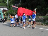 令和4年度神明神社祭礼に参加しました。小学生児童3名に加え、卒業生、保護者、学校運営協議会委員の方々、公民館の皆さんに御協力いただき、子ども牛鬼で結出地区を練り歩きました。昨年度は、参加できなかったこともあり、今年は家の前まで出て子供たちの到着を待ってくださっている地域の方もいらっしゃり、本当に地域に大事にされている子供たちだと実感しました。人数は少なくなりましたが、いつまでも残していきたい地域行事だと思います。御協力いただいたみなさま、本当にありがとうございました。