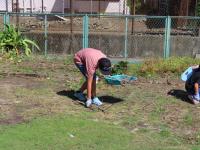 台風一過の気持ちのいい天気になりました。台風14号の影響で、校庭には折れた木の枝が散乱していたので、掃除の時間にみんなで集めました。