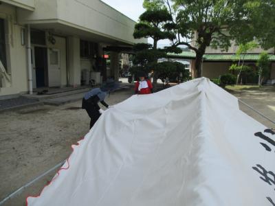 もちろん、テントの外でも地域の方々がラジオ体操をしています。