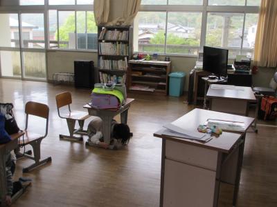 結出小5つの約束、3つ目の後片付け(履き物をそろえる、椅子を入れる)がバッチリできています!
