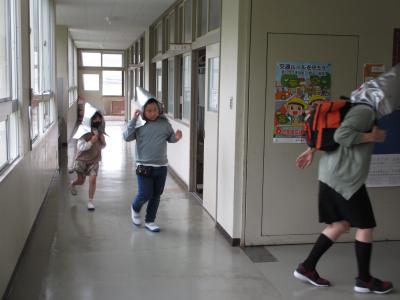 ■参観してくださった方々と一緒に授業を楽しんだ後は、避難訓練です。