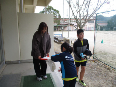 清家勲先生による陸上教室 2023年12月2日 17時43分 冬らしい日ではありますが、日の差す午後、結出小のグラウンドで清家勲先生による陸上教室を行いました。 結出小の3人だけでなく、三浦小や城南中、皆田小、宇和中、三間中、宇和高からも来てくださいました。 総勢10名ほどでの陸上教室です。 以前教えていただいた「いさお体操」?に始まり、ラダーなどの器具を使っての各種ドリル。 陸上の動き作り、そして、ゲーム性を持たせたリレーなど、次から次へとやることが変わっていきます。 縄跳び(短縄)を使った個人練習だけでなく、リレーも行いました。 最後にみんなで記念撮影。 アッという間の2時間でした。 「また来てもらいたい人?」 結出小の3人と結出小出身の兄さんの4人の手が、ザッと上がりました。 清家先生、陸上運動が好きになるたくさんの動きを教えてくださって、本当にありがとうございます。 陸上教室に参加してくださった皆さんも、ありがとうございます。 おかげさまで友達と交流しながらの、楽しい陸上教室となりました。 ぜひ、また参加してくださいね!