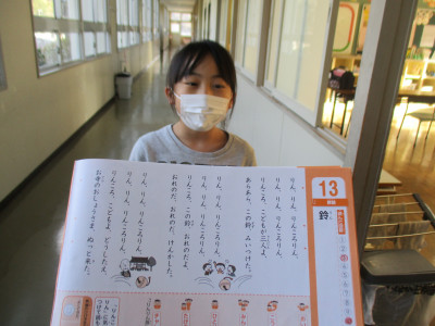 今日は5年生が「まんじゅうこわい」に、2年生は「鈴(りん)」の暗唱に見事合格しました。